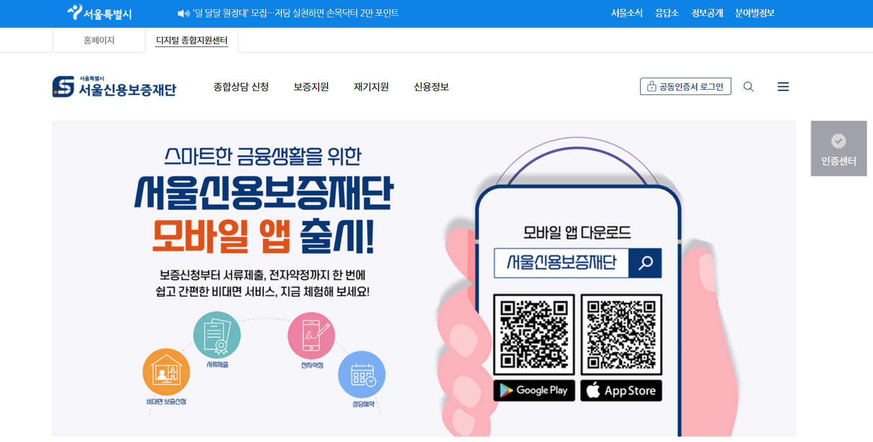1. 지역신용보증재단 앱(서울: 서울신보 )에서 보증 신청을 합니다.
