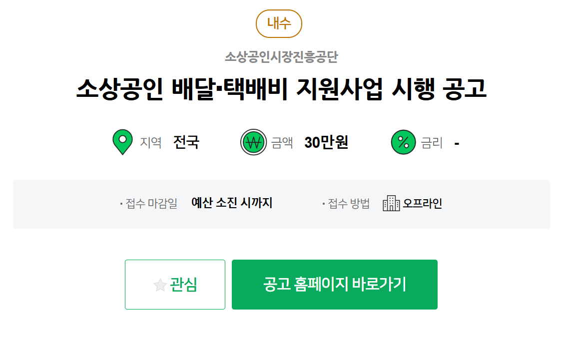 소상공인 배달, 택배비 지원사업 30만원 (예산소진시)
