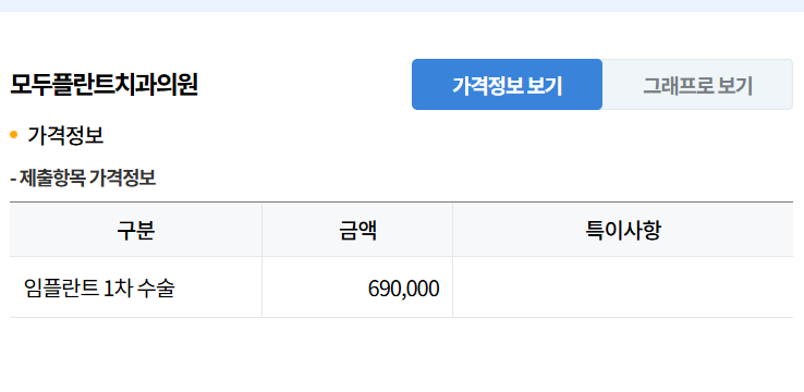 가격은 건강보험심사평가원에서 정확한 가격을 보실 수 있습니다. 1번치과 임플란트는 개 당 90만원입니다.