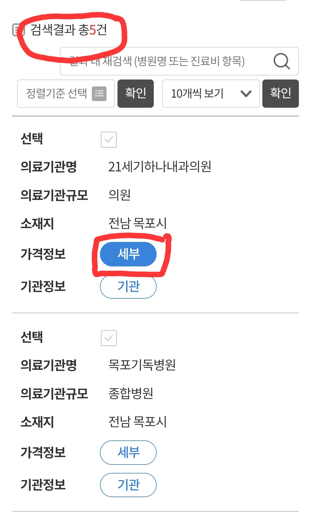 그러면 위에 몇 건이 검색되었는지 확인 할 수 있습니다. 가격정보 세부 누릅니다.